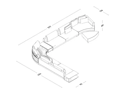 Measures: W: 577 cm D: 424 cm H: 136 cm
